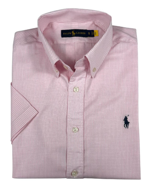 Camisa manga corta Polo Ralph Cuadros Rosada